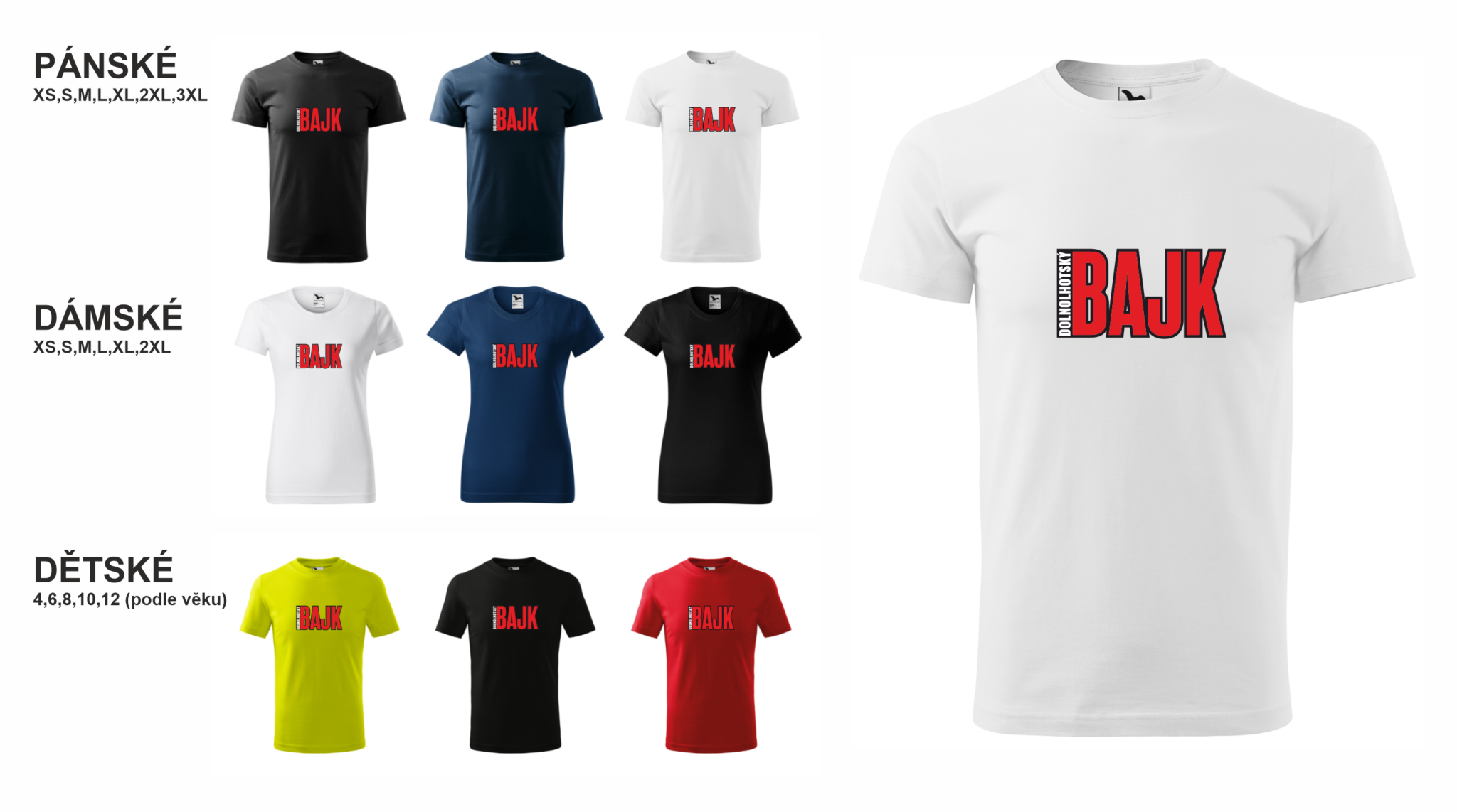 Trička s vyzvednutím na Bajku 20. června lze závazně objednávat do neděle 14.6.2026. Platba za trička musí být připsána na účet nejpozději v pondělí 15.6.2026!